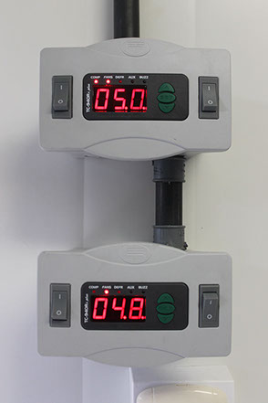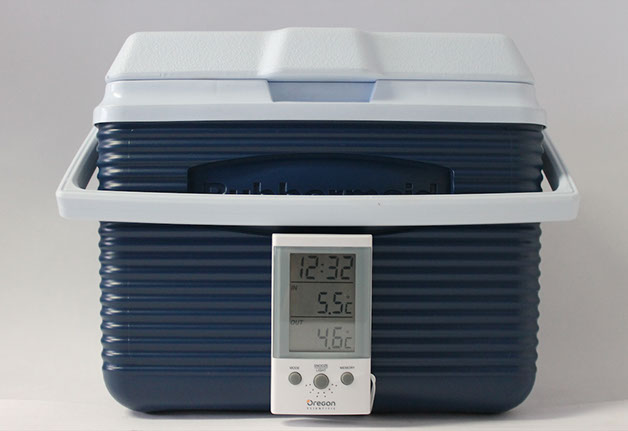 Hieleras herméticas con refrigerante de gel químico (ice pack) y termómetro digital de temperaturas máximas, intermedias y mínimas